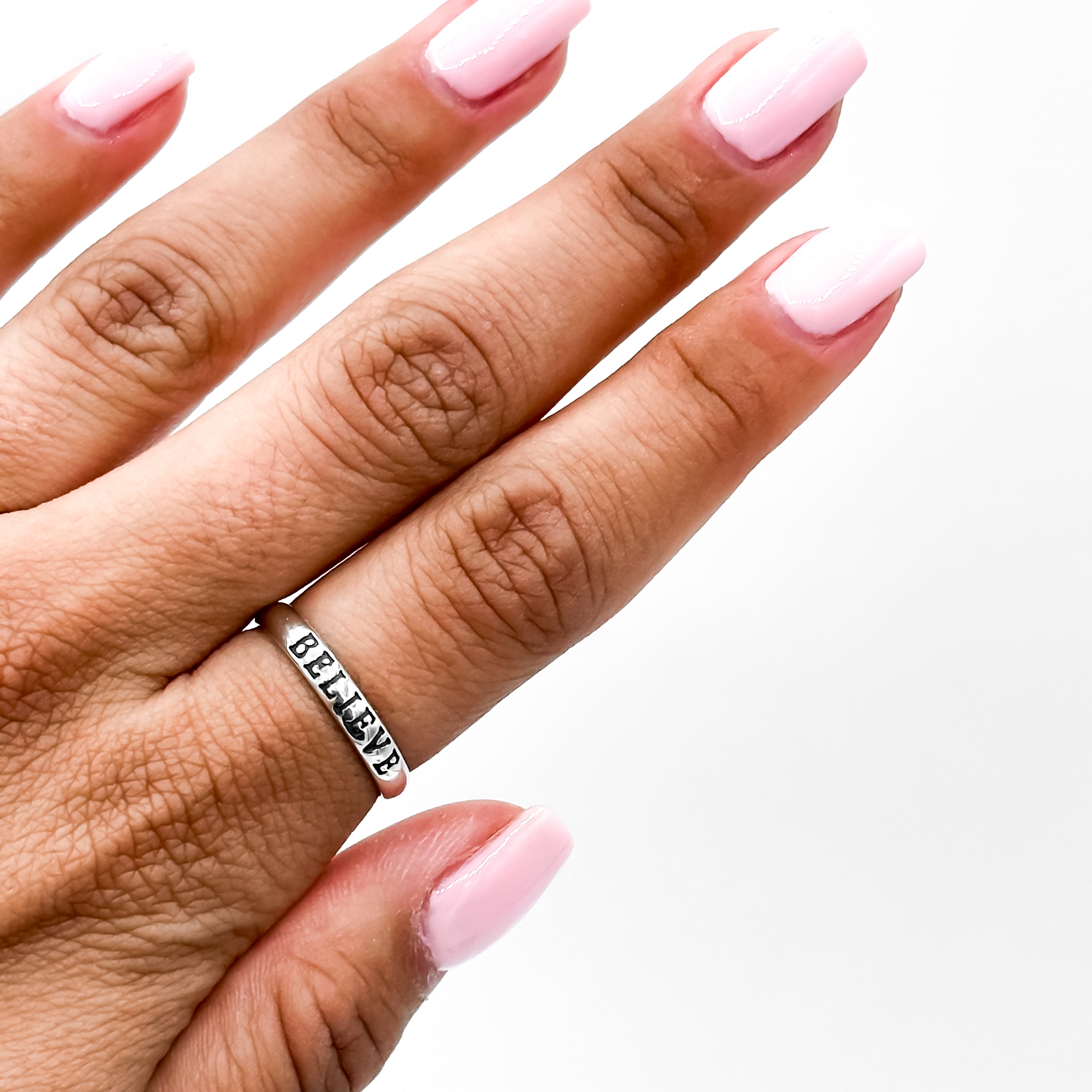 Fabriquée en argent sterling 925, cette bague offre à la fois robustesse, durabilité et confort au quotidien. Légère et agréable à porter, elle devient rapidement un indispensable de votre collection de bijoux. Sa symbolique "Believe" (croire) lui confère une dimension unique : elle incarne la confiance en soi, l’optimisme et la force intérieure, faisant de ce bijou un véritable porte-bonheur moderne.