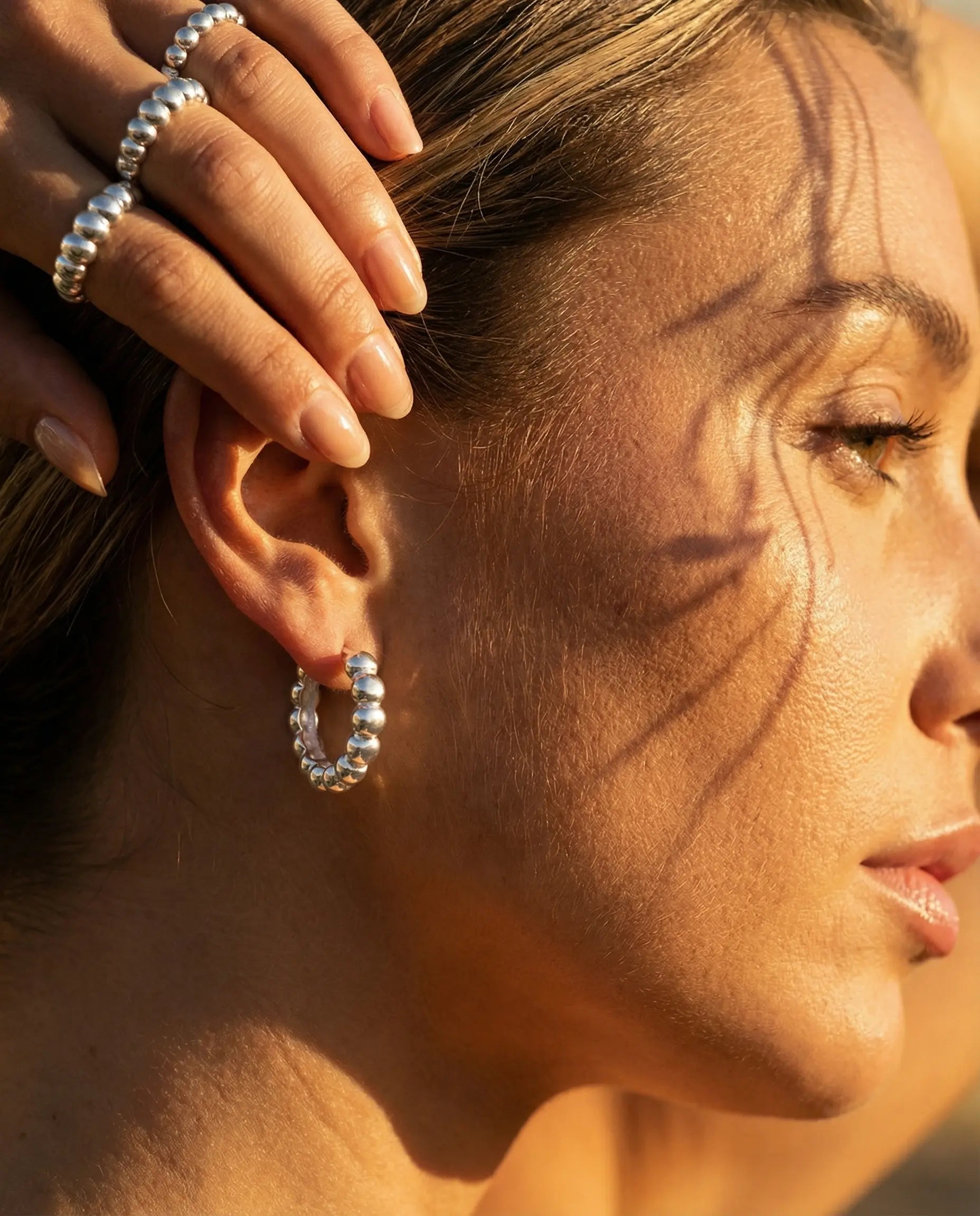 Les Boucles d’oreilles Joy dessinent deux petites vagues d’argent qui longent le lobe, comme un écho discret à chaque mouvement de tête. Leur ligne ondulée accroche la lumière et la renvoie en éclats précis, sans jamais alourdir le visage. Travaillées dans des ateliers à São Paulo, elles prolongent l’énergie solaire de la bague Joy et accompagnent les femmes qui veulent laisser parler leur lumière plutôt que le volume.
