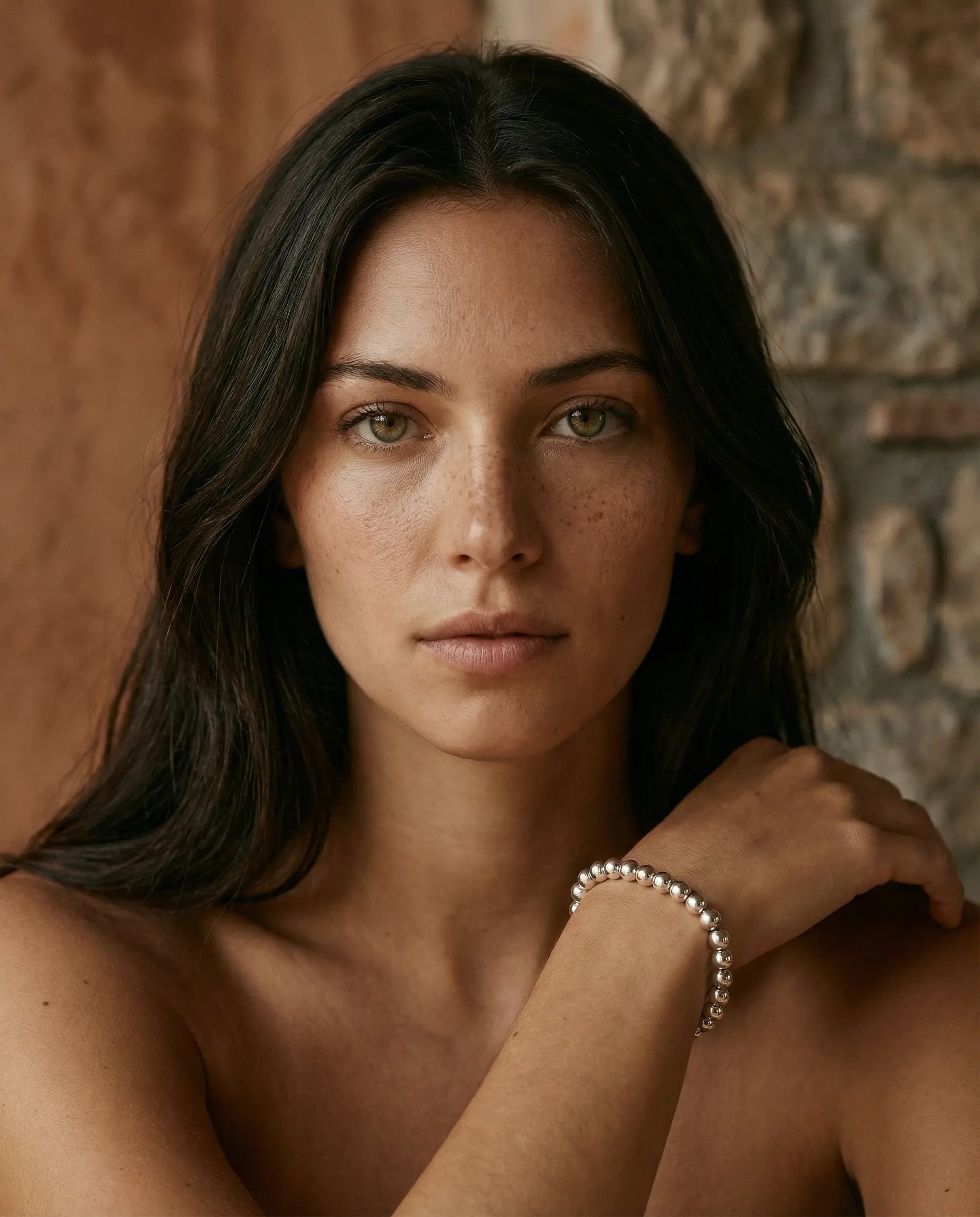 Le Bracelet Luz enveloppe le poignet d'une succession de sphères lumineuses, comme un chapelet de perles d'argent qui capturent chaque reflet du jour. Ses boules de 6 mm, rondes et généreuses, roulent sur la peau avec une fluidité apaisante, rappelant la douceur des galets polis par l'océan. Façonné en Italie, il incarne une élégance intemporelle et rassurante, un bijou de présence qui accompagne chaque geste d'un éclat franc et solaire.