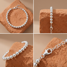 Le Bracelet Luz en argent 925 se distingue par son design classique de bracelet boules, revisité avec des sphères de 6 mm pour un volume idéal, ni trop fin, ni trop imposant. Fabriqué en Italie selon des normes de qualité strictes, il est hypoallergénique et résistant à l'eau, conçu pour durer toute une vie. Sa longueur ajustable en fait un cadeau parfait, s'adaptant à la majorité des poignets. Porté seul pour un style minimaliste ou en accumulation (stacking) avec d'autres joncs ou chaînes, il est l'allié indispensable d'une garde-robe élégante et durable.