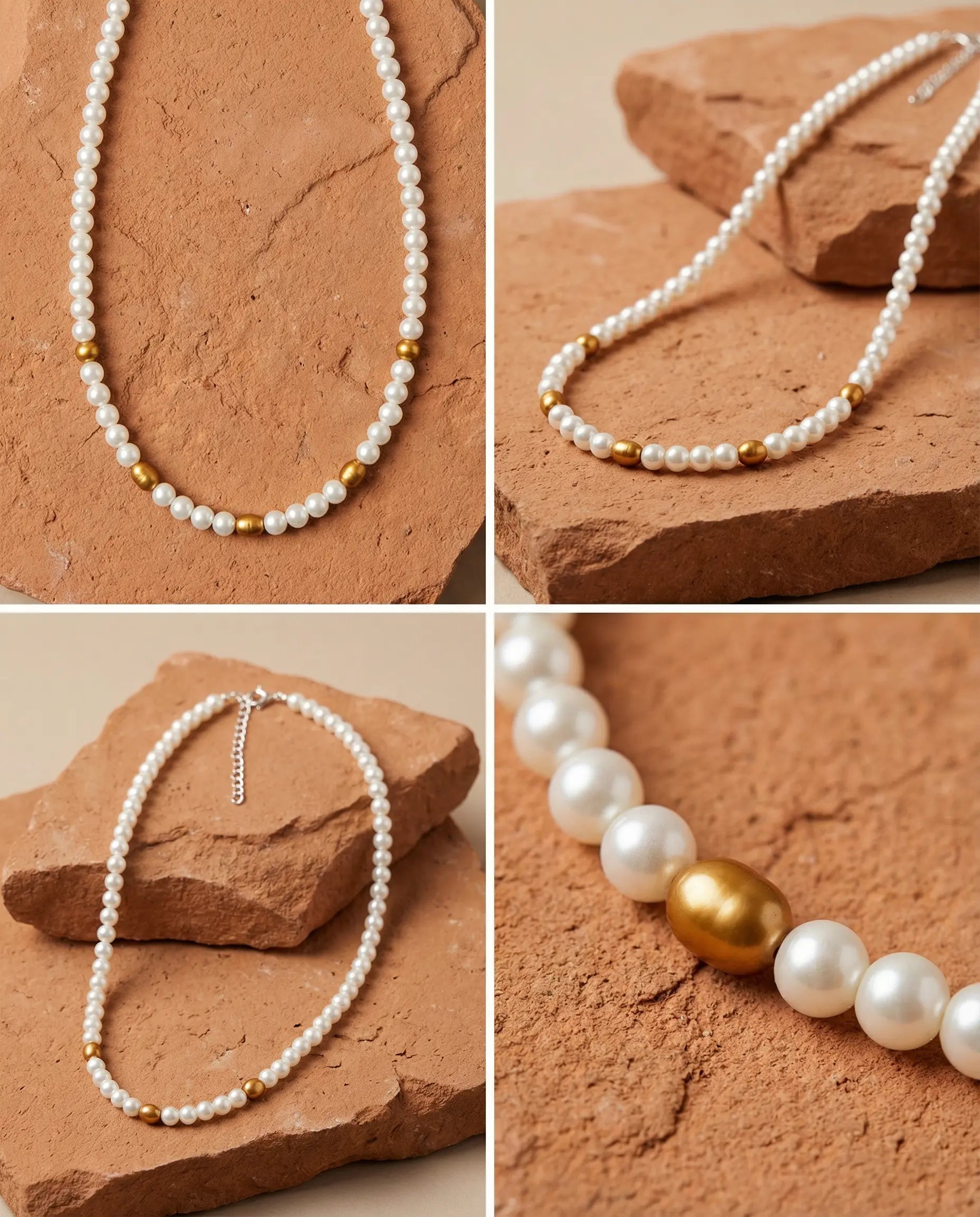 Pierre : Perles blanches nacrées et perles marron intercalées