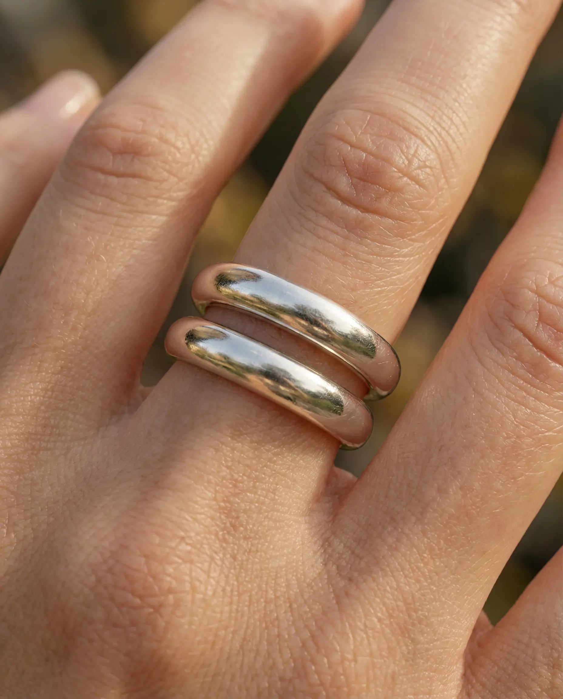 • Design Bague Dua : Double jonc arrondi, poli miroir