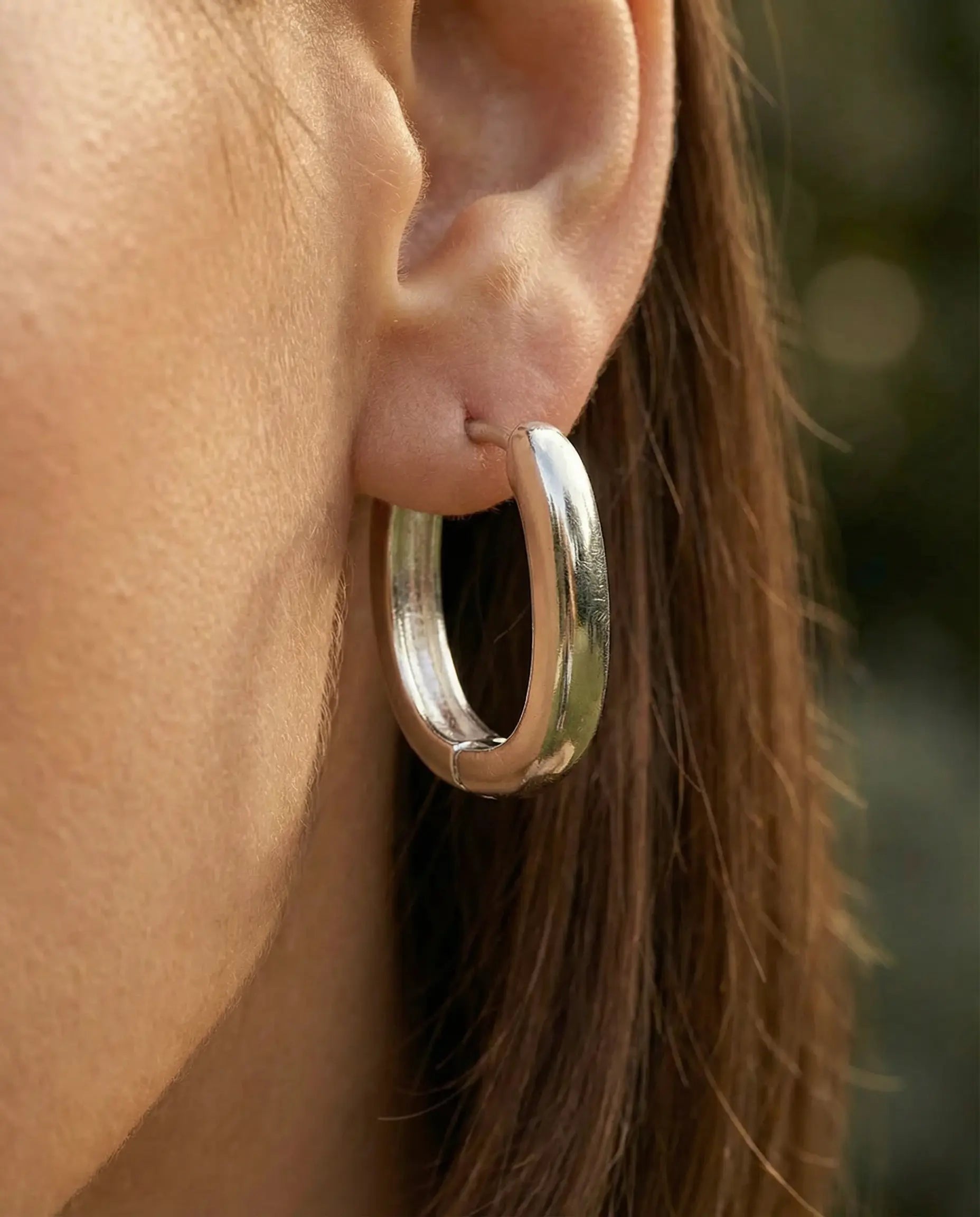 • Design Boucles Brune : Mini créoles rectangulaires lisses